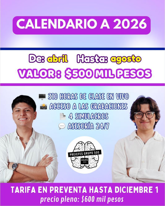 Combo PreICFES Grupo 500 – Calendario G 2025 + Calendario B 2026